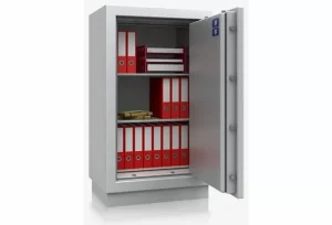 Dit houdt in dat het een gecertificeerde brandwerende kluis is, die de inhoud voor minimaal een 120 minuten beschermd tegen de hitte van een brand.