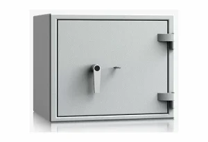 Dit houdt in dat het een gecertificeerde brandwerende kluis is, die de inhoud voor minimaal een 60 minuten beschermd tegen de hitte van een brand.